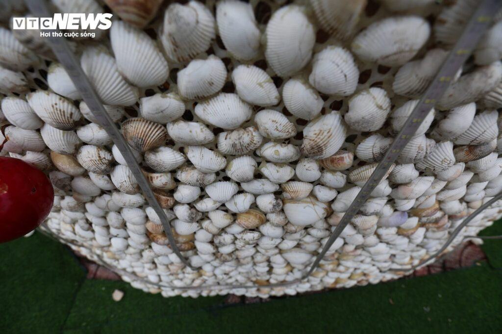 “Trong lúc dọn dẹp bãi biển, nhận thấy có nhiều vỏ sò nên chúng tôi lên ý tưởng làm cây thông Noel bằng cách kết dính từng chiếc vỏ lại với nhau. Cây thông có chiều cao 8m, đường kính đáy rộng 3,2m. Xung quanh được trang trí lung linh bằng hằng trăm bóng đèn, bóng nháy”, anh Truyền nói.